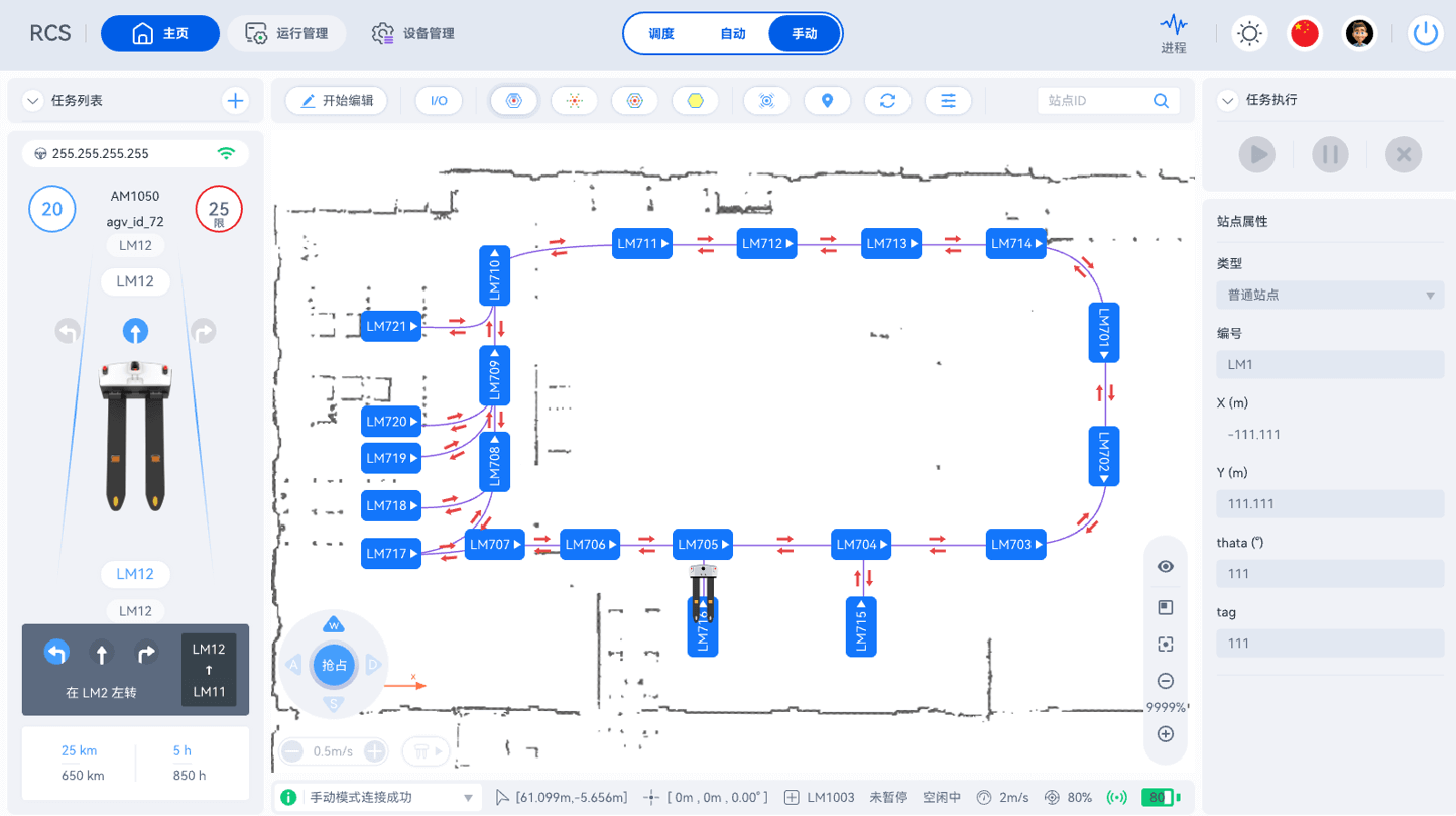 用于管理AiTEN710公海寰宇机器人的RCS(机器人控制系统)是一个直观的工具,它具备高精度传感定位,可异常实时响应处理,应对货架位移/临时障碍物干扰。